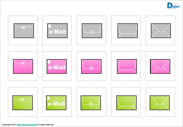 メールの各種カラーバリエーションです。メール配信イメージやシステム構成図作成などにご活用ください。