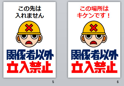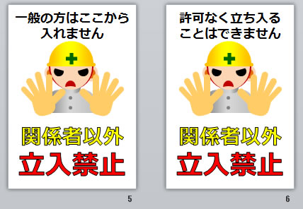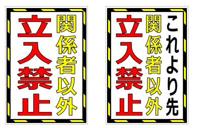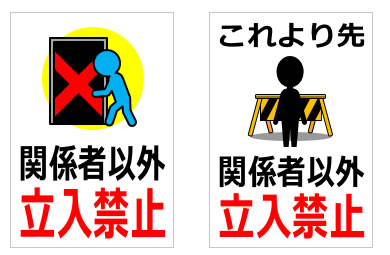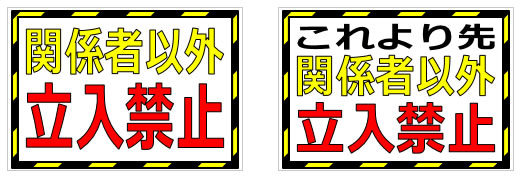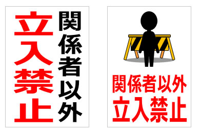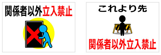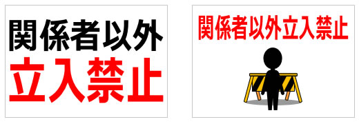 「関係者以外立入禁止」の文字のみ、「関係者以外立入禁止」とアイコン表示などA4縦/横