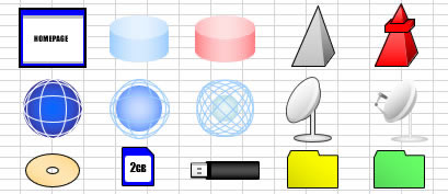 エクセルのシート上でシステム構成図などを作成するための素材パーツ集です。少し斜めの角度で立体感があります。色を変更することでバリエーションを増やす事もできます。