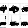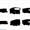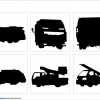 各種車両を斜め上から見下ろしたアングルのシルエットです。トラックやワゴン、乗用車などです。各種車両関係の資料作りや、駐車関連の貼り紙などの素材にご活用ください。