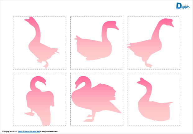 フリー、無料で使えるガチョウのシルエット画像です。パワーポイントPPTX形式で作成しています。制作は主に図形機能を使っています。白黒シルエットとカラーシルエットの2パターン作成しています。