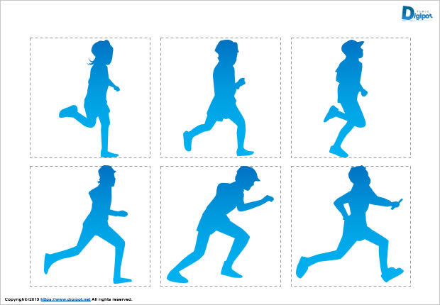 フリー、無料で使える徒競走する子供のシルエット画像です。パワーポイントPPTX形式、PNG形式画像で作成しています。制作は主に図形機能を使っています。白黒シルエットとカラーシルエットの2パターン作成しています。