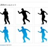 ジョギングする人物のシルエット、走る人、ランニング、横から見た走る人物、軽く走る、ウォーキング、白黒、グラデーションなど30パターン