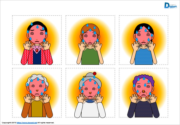 - 熱中症、酷暑、猛暑、気温の高い室内などのイメージに