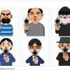 暑さで目を回す男性のイラスト,熱中症,体温上昇,熱でぼーっとする、目がグルグル回る、滝汗、フチ有りフチ無しなど12種類。