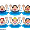 暑さで目を回す子供、女の子のイラスト,熱中症,体温上昇,熱でぼーっとする、目がグルグル回る、滝汗、フチ有りフチ無しなど12種類。