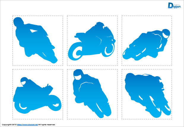 バイクのコーナリングや後方からなど様々な角度のシルエットです。レースイメージなどにご活用ください。
