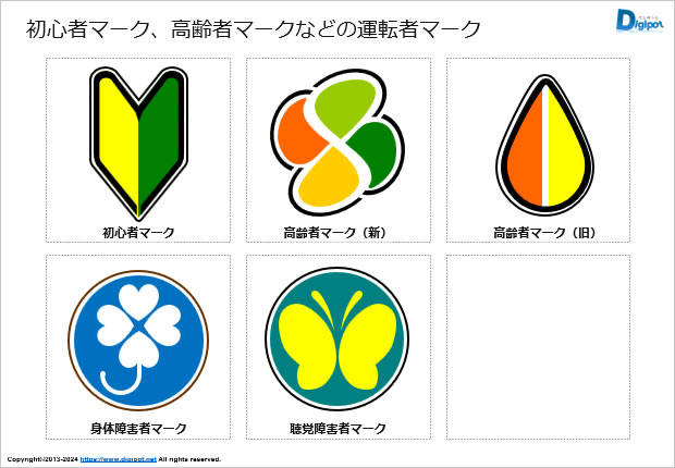 初心者マーク、高齢者マークなどの運転者マーク(パワーポイント/PNG画像/エクセル/ワード)