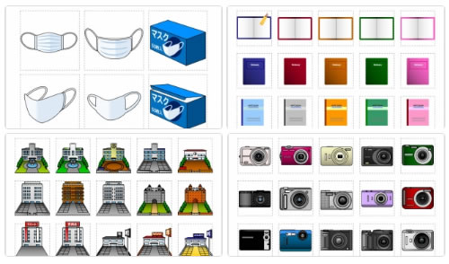 以下のようなフリーで使えるイラストコンテンツはサイト内に600点以上あります。