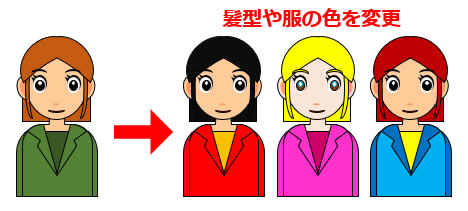 例えば人物の服装などは、「色の編集」で変更することができます。