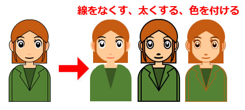 色の変更や、サイズの縮小、部分的な編集が容易なのは、すべてパーツの集合体で作成しているからです。