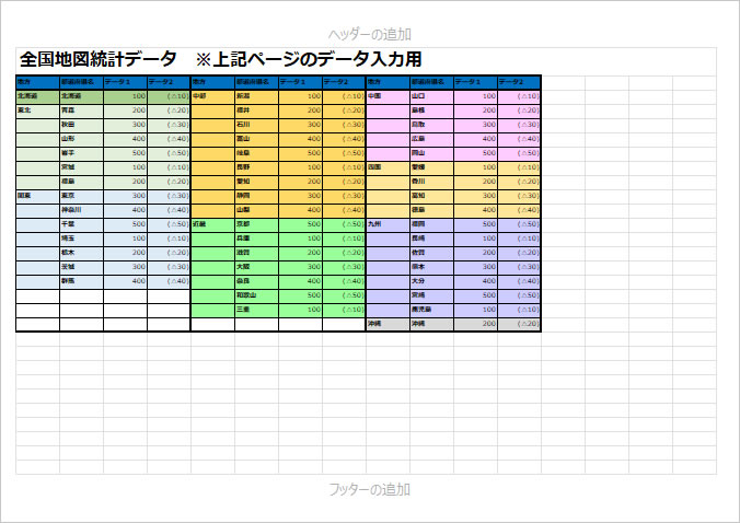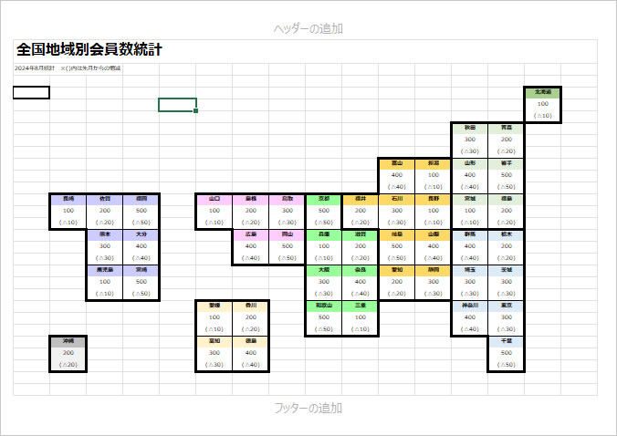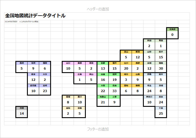 日本地図に都道府県別に数値入力できるテンプレート(エクセル)