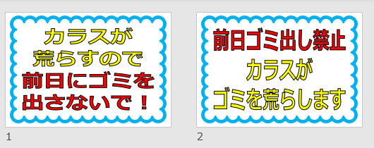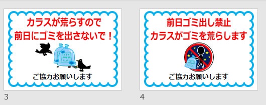 カラスが荒らすので前日にゴミを出さないで!の貼り紙(パワーポイント)