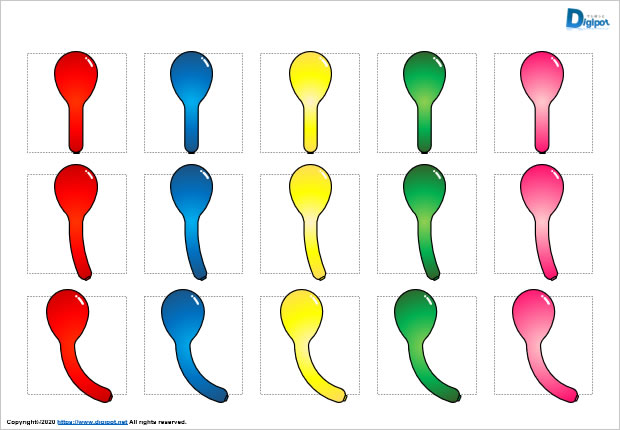 フリー、無料で使える風船、ジェット風船のイラスト画像です。パワーポイントPPTX形式で作成しています。制作は主に図形機能を使っています。フチ有りとフチ無しの2パターン作成しています。