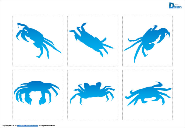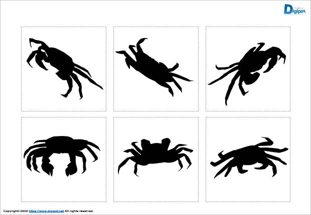 カニのシルエット、蟹、歩くカニ、白黒、グラデーションなど12種類