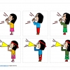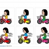 自転車に乗る女の子のイラスト、小学生、自転車をこぐ、自転車運転、立ちこぎ、フチ有りフチ無しなど12種類