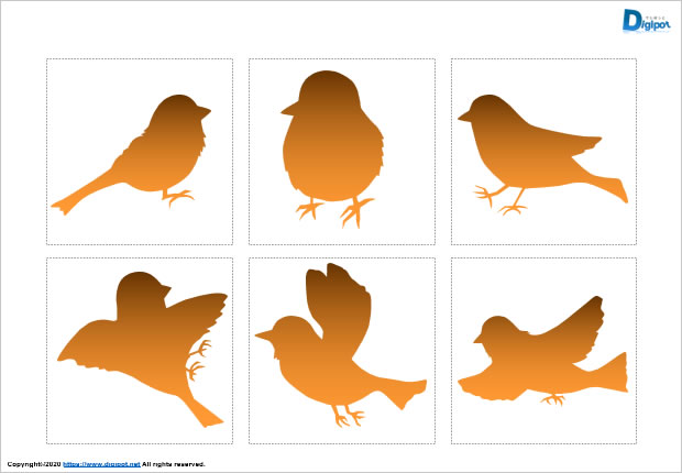 スズメのシルエット、雀、歩くスズメ、飛んでいるスズメ、グラデーション、フチ有りフチ無しなど12種類