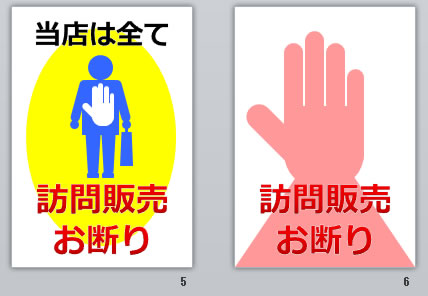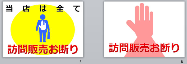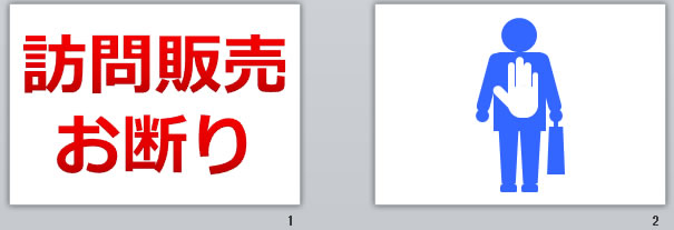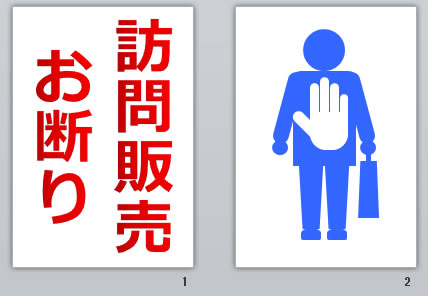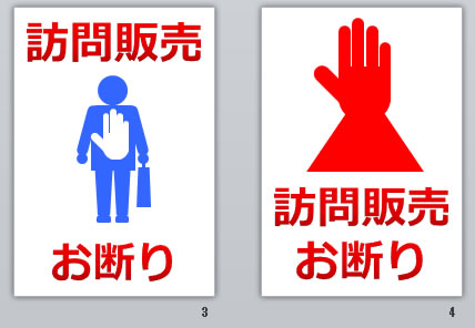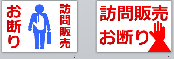 「訪問販売お断り」の文字のみ、「訪問販売お断り」とアイコン表示などA4縦/横