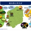 東京都と言えばをまとめた資料、東京都をイメージするイラスト、都庁、国会議事堂、東京駅、雷門、東京タワー、東京スカイツリー、羽田空港、人形焼き、もんじゃ焼き、山手線、柳川鍋、雷おこし、江戸前寿司、銀杏並木、小松菜、隅田川花火大会、皇居ランナー、トウキョウXなど18種類