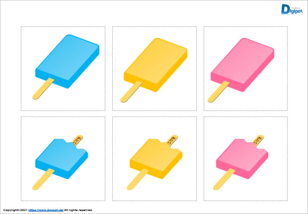 棒アイスのイラスト、食べかけのアイス、当たりアイス、フチ有りフチ無しなど12種類