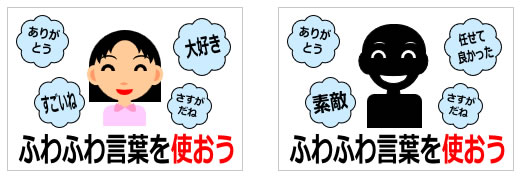 ふわふわ言葉を使おうの貼り紙(パワーポイント)をダウンロードする