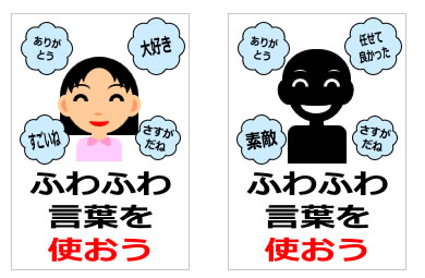 ふわふわ言葉を使おうの貼り紙(パワーポイント)
