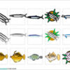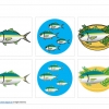 鰯、イワシのイラスト、かごに入ったイワシのイラスト、集団で泳ぐイワシ、フチ有りフチ無しなど6種類