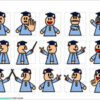 発熱を気にする男の子のイラスト、熱をはかる、額に手をあてる、気分が悪い、小学生、中高生、フチ有りフチ無しなど12種類