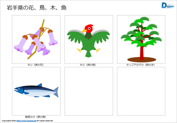 岩手県の花、鳥、木、魚のイラスト(パワーポイント)をダウンロードする