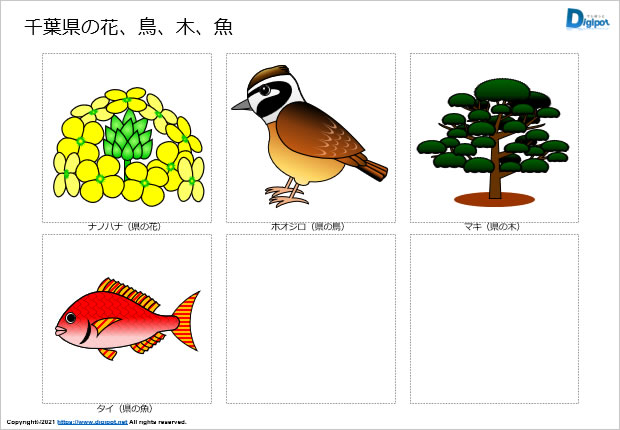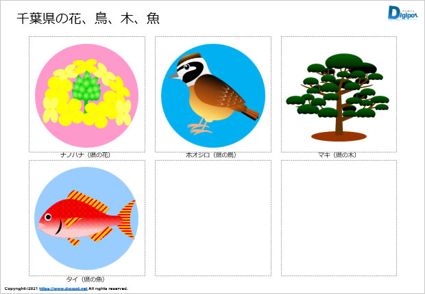 千葉県の花、鳥、木、魚のイラスト、資料内容