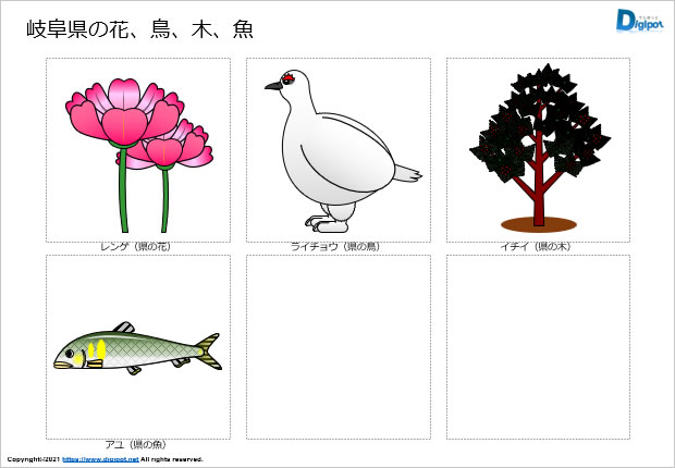 岐阜県の花、鳥、木、魚のイラスト、資料内容