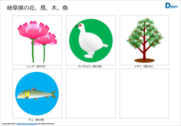 岐阜県の花、鳥、木、魚のイラスト(パワーポイント)をダウンロードする