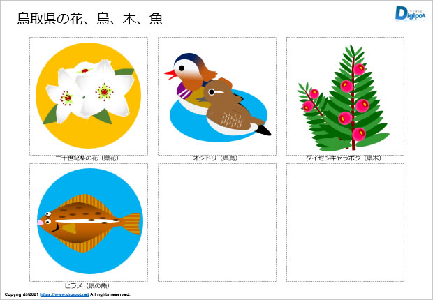 鳥取県の花、鳥、木、魚のイラスト(パワーポイント)をダウンロードする