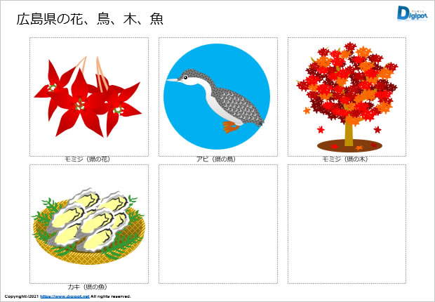 広島県の花、鳥、木、魚のイラスト、資料内容
