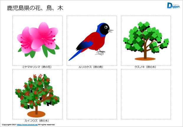 鹿児島県の花、鳥、木のイラスト、資料内容