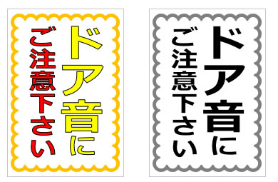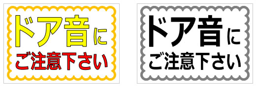 ドア音にご注意下さいの貼り紙(ペラガミ.com)