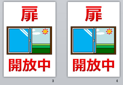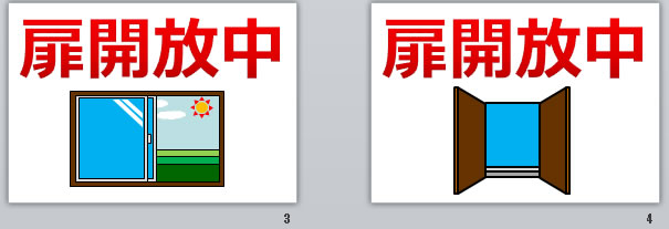 扉開放中の貼り紙(パワーポイント)