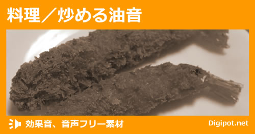 フリー、無料で使える料理の炒める音、油のはじける音の音声素材です。MP3ファイル形式データ8種類です。
