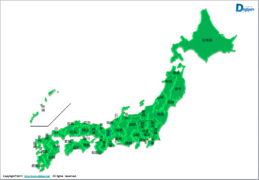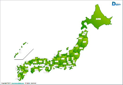 フリー、無料で使える日本地図です。パワーポイントPPTX形式です。