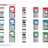 銀行やコンビニなどに設置されたATM端末のイラスト、高さ違い、デザイン違い、フチあり、フチなし、カラーイメージ別など30種類