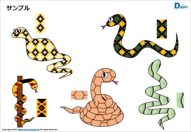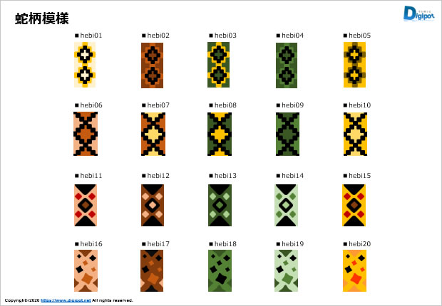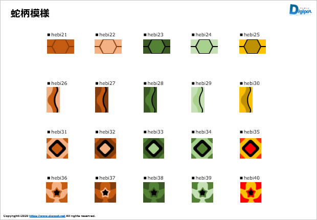 ヘビ、蛇柄模様、各種形状、各種カラーバリエーションなど40パターン