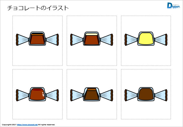 チョコレートのイラスト、包装チョコ、一口チョコ、ホワイトチョコなど12種類