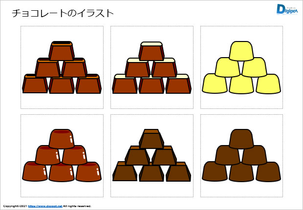 フリー、無料で使えるチョコレートのイラスト画像です。パワーポイントPPTX形式と、パワーポイントから書き出したPNG透明形式ファイル版を用意しています。
