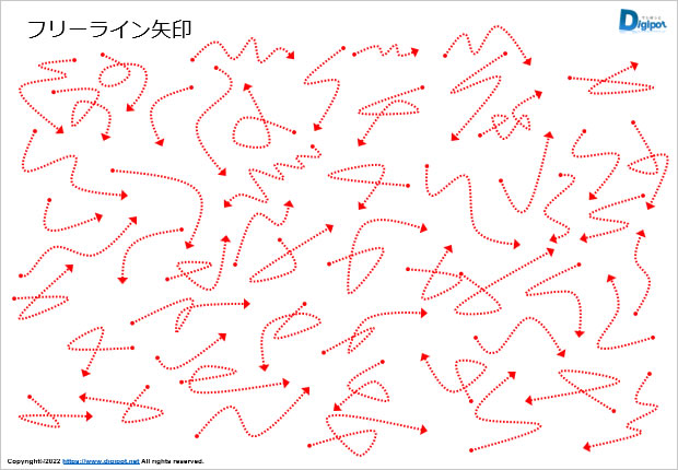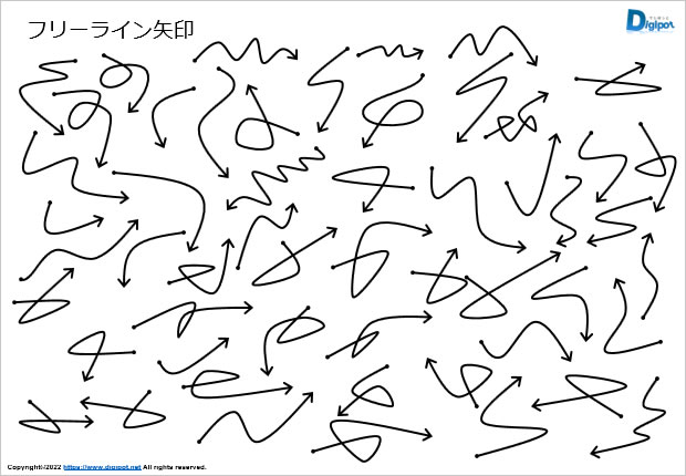 フリーライン矢印図形、フリーハンド、片方矢印、両方矢印、形状など各種