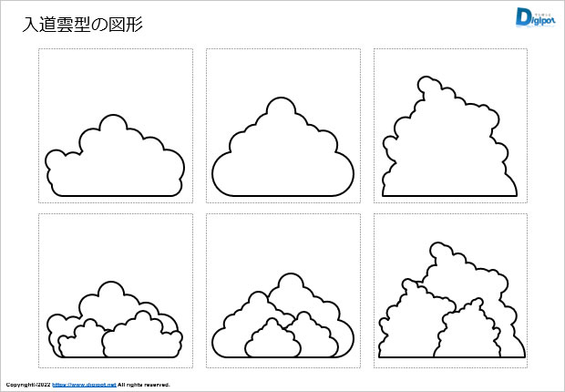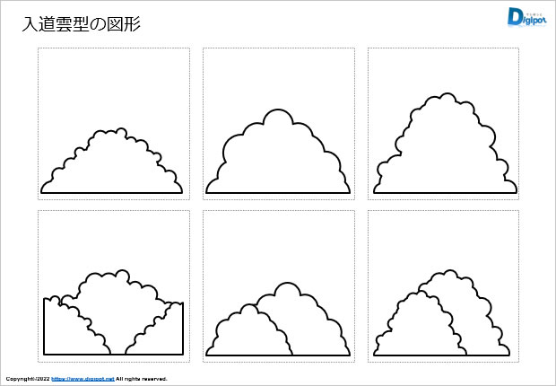 入道雲型の図形、夏の入道雲、重なった入道雲、各種形状など12種類