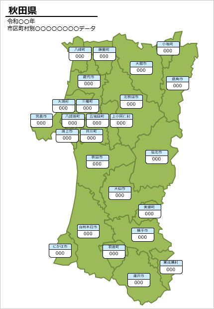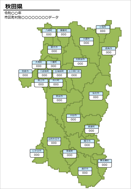 秋田県の市町村別の数値入力データマップ(パワーポイント/エクセル)|地域データの視覚化に