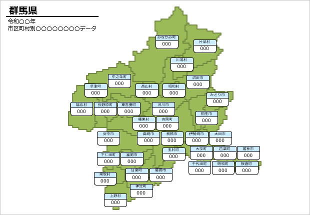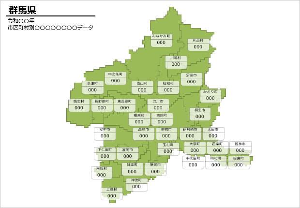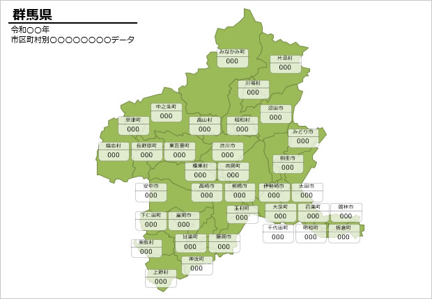 群馬県の市町村別の数値入力データマップ(パワーポイント/エクセル)|地域データの視覚化に