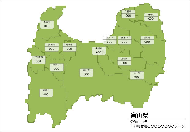富山県の市町村別の数値入力データマップ(パワーポイント/エクセル)|地域データの視覚化に