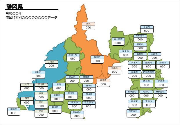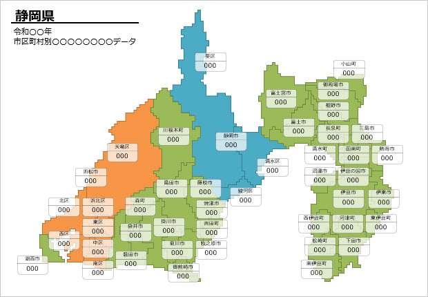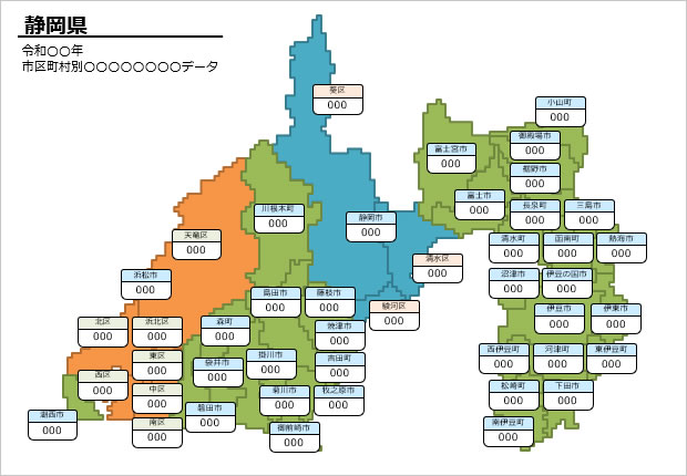 静岡県の市区町村別の数値入力データマップ(パワーポイント/エクセル)|地域データの視覚化に