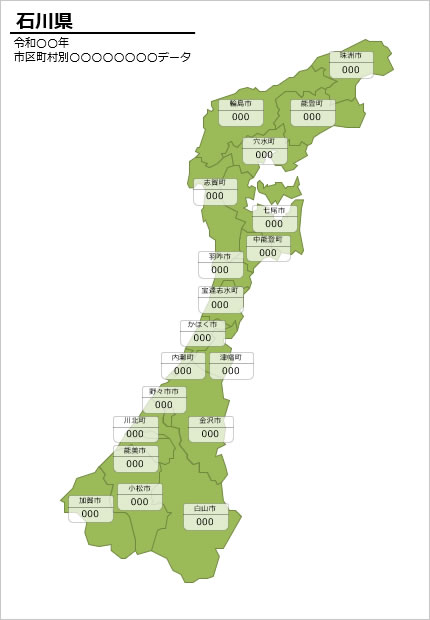 石川県の市町村別の数値入力データマップ(パワーポイント/エクセル)|地域データの視覚化に